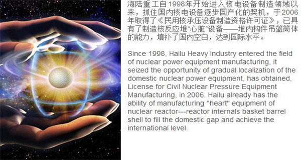 蘇州海陸重工股份有限公司位于江蘇省張家港市開發區,是國內一流的節能環保設備的專業設計制造企業,目前并已初步形成鍋爐產品、大型壓力容器、核電設備、低溫產品、環保工程共同發展的業務格局。公司創建于1956年,注冊資本51640萬元,占地面積近50萬平米。公司下設八個控股子公司,一個余熱鍋爐研究所,在瑞士、北京、武漢、南京、上海、杭州、廣州等地設立分支機構,擁有雄厚的研發實力。公司秉承“科技領航、業界先鋒”的發展理念,注重研究廢熱、余熱利用和環境保護相結合的新技術研發,自主設計能力居同行前列;公司承擔過國家863計劃,江蘇省科技成果轉化專項資金,榮獲國家科技進步二等獎,產品擁有核心自主知識產權并取得專利50多項;公司推行國際先進的管理體系標準和認證,擁有 A級鍋爐制造許可證,A1、A2、A3級壓力容器設計和制造許可證,取得了民用核承壓設備制造資格許可證、美國機械工程師學會(ASME)“S”、“U”鋼印,通過了ISO9001質量體系認證、健康體系認證和14000環境體系認證;公司設備先進,裝備精良,專業嚴謹的制造理念打造出品質非凡、質量一流的“海陸”品牌聲譽。